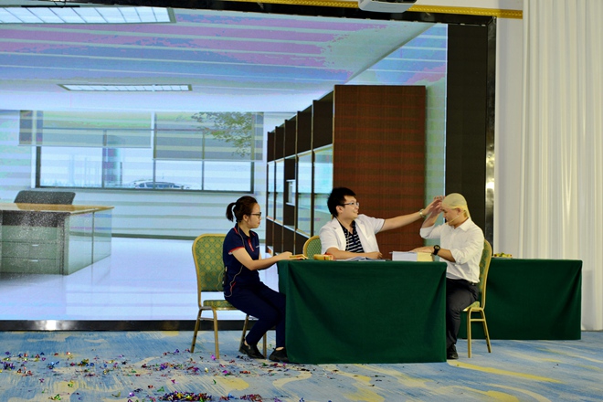 劇目《中國好女婿》圍繞“規(guī)范專業(yè)”的集團(tuán)核心價值觀, 通過一個“招女婿”的招標(biāo)項目,幽默風(fēng)趣地展現(xiàn)出云之龍人嚴(yán)格執(zhí)行行業(yè)標(biāo)準(zhǔn),嚴(yán)把內(nèi)控關(guān)的行事風(fēng)格。