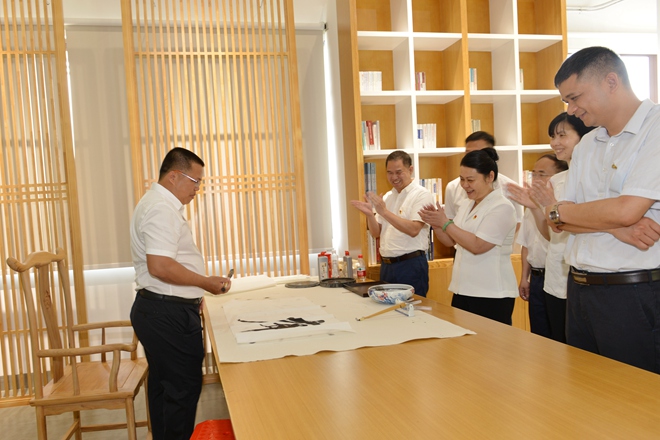韋敏生書記在研習(xí)館提筆寫下“廉潔”二字
