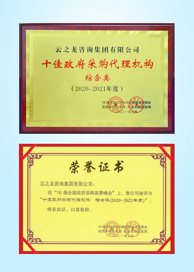 云之龍咨詢集團再獲全國十佳政府采購代理機構(gòu)