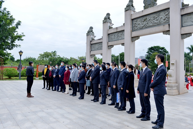 在講解員的帶領(lǐng)下,全體黨員參觀了南寧市孔廟的欞星門、狀元門、狀元橋、泮池等。黨員同志了解孔廟歷史,聆聽孔夫子等諸位先賢的智慧故事,追憶古代圣賢的高尚廉潔品質(zhì)。