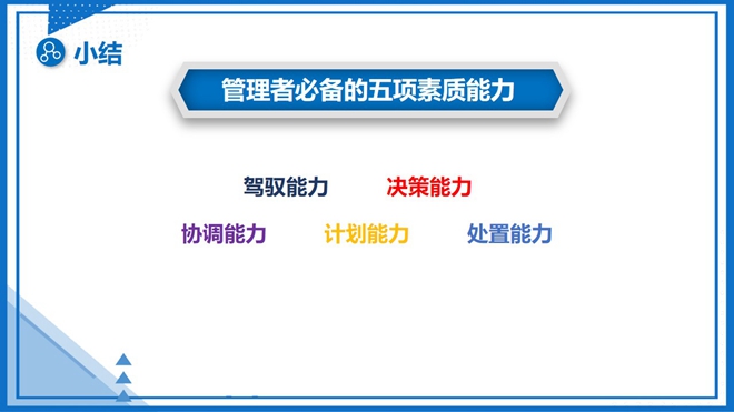 課程內(nèi)容圍繞優(yōu)秀管理者應(yīng)該具備的五大人格魅力、五項素質(zhì)能力、最常用技巧以及管理者應(yīng)重視的管理意識問題等內(nèi)容展開。課上,還為大家播放了多個視頻案例,通過生動的視頻解讀其中管理思維。