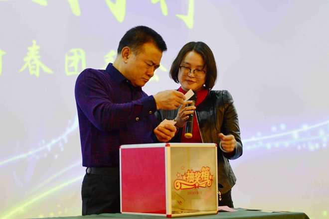 用餐環(huán)節(jié),總裁王鐿霖攜云之龍集團(tuán)高層領(lǐng)導(dǎo)給員工及家屬敬酒拜年,恭賀新春,并給家屬們送上了誠意滿滿的新年紅包。與此同時,行政部總經(jīng)理劉斯娜組織大家進(jìn)行驚喜連連的抽獎和微信搶紅包活動,集團(tuán)為大家準(zhǔn)備了各式小家電和大禮包,臺上主持人不斷宣布獲得各類大獎的得主,引起陣陣歡呼,歡聲笑語充滿了整個大禮堂,把整個晚宴氣氛推上了最高潮。