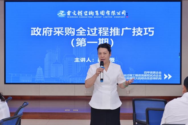培訓伊始,王鐿霖總裁強調,疫情當下,市場競爭日趨激烈,我們更應努力提升自身專業(yè)水平,應用“利他”思維開展咨詢服務工作,用心服務好每一位客戶。一是‘勤’,勤溝通,了解客戶需求,勤學習,為客戶提供專業(yè)咨詢服務;二是‘專’,提高專業(yè)能力、專研政府采購全過程咨詢業(yè)務技能。她勉勵在場的學員,要認真學習政府采購全過程咨詢專業(yè)知識與技能,并將所學運用到實際中,更好地為客戶提供專業(yè)、優(yōu)質的咨詢服務。
