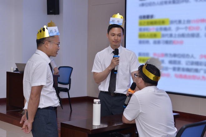 聶總精心策劃組織了專業(yè)話術情景模擬演練PK賽,將現(xiàn)場學員分為“昆侖”“峨眉”“少林”“華山”4個組別。通過4個最有可能接觸客戶的場景,讓學員現(xiàn)場模擬日常與客戶溝通交流的過程。演練結束后,學員當場歸納總結在演練中表現(xiàn)出的精彩語錄和溝通技巧。通過學習及練習,最后總結沉淀經(jīng)驗,讓學員們身臨其境,印象深刻,收獲頗多。