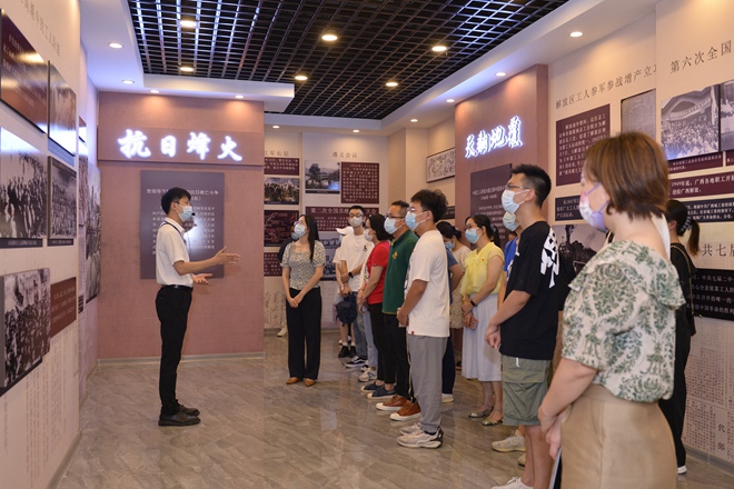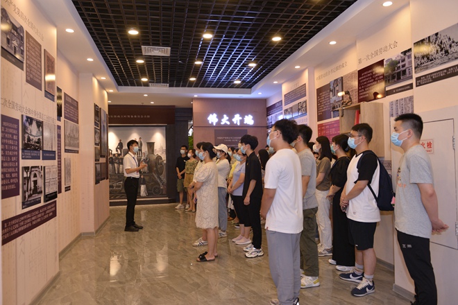 當(dāng)天活動(dòng)中,大家跟隨講解員首先參觀了一樓展陳館,通過解說、文字、圖片、視頻等回顧中國共產(chǎn)黨的偉大開端、山重水復(fù)、抗日烽火、天翻地覆四個(gè)篇章,感受紅色歷史,傳承黨史精神。
