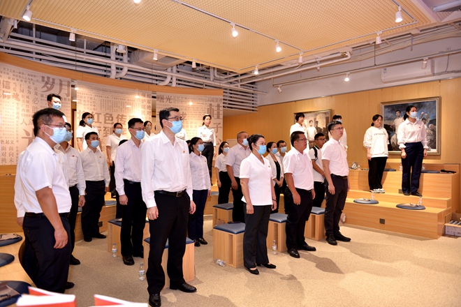 隨后,全體黨員在體驗(yàn)區(qū)觀看《習(xí)近平總書記在慶祝中國共產(chǎn)黨成立一百周年大會(huì)上的講話》短片,并進(jìn)行宣誓。