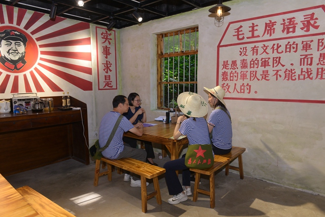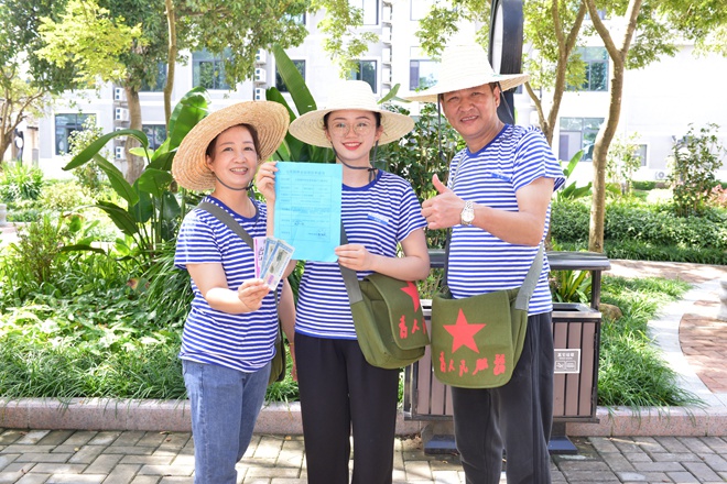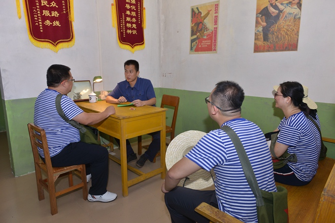 這一次的廉潔教育活動(dòng),形式新穎,“走新”又“走心”?;顒?dòng)當(dāng)天,黨員同志來(lái)到南寧市七坡林場(chǎng),沉浸式體驗(yàn)廉政教育主題劇本游《叩問(wèn)初心》。大家換上藍(lán)白勞動(dòng)T恤,戴上草帽,挎上“為人民服務(wù)”的斜挎包,迅速“穿越”到20世紀(jì)80年代。