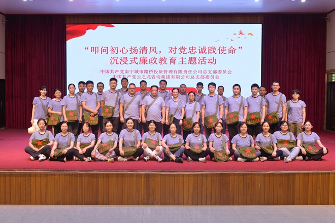 為深入學(xué)習(xí)貫徹黨的二十大精神,進(jìn)一步加強(qiáng)黨員的黨性修養(yǎng),從思想上筑牢拒腐防變的思想防線,2023年9月20日,云之龍咨詢集團(tuán)黨總支部與南寧路橋公司黨總支部開(kāi)展“叩問(wèn)初心揚(yáng)清風(fēng),對(duì)黨忠誠(chéng)踐使命”沉浸式廉潔教育主題活動(dòng)。