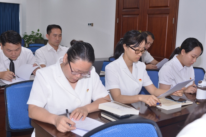會上,全體黨員在蒙舒蕓委員的帶領(lǐng)下,集體學(xué)習(xí)《習(xí)近平新時代中國特色社會主義思想專題摘編》。