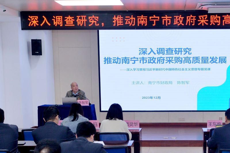 黨課圍繞學深悟透習近平新時代中國特色社會主義思想,緊扣職能職責,結(jié)合工作實際,用黨的創(chuàng)新理論指導實踐、推動工作。他要求,黨員同志要把理論學習作為重中之重,做到既通覽全局、知曉整體,又要把握重點,系統(tǒng)化、全方位、多角度學習領(lǐng)悟,不僅有“質(zhì)”更應有“效”。陳智軍副處長希望全體黨員提高認識,更好掌握習近平新時代中國特色社會主義思想,加快推動南寧市政府采購高質(zhì)量發(fā)展,為新時代壯美廣西建設(shè)貢獻一份力量。