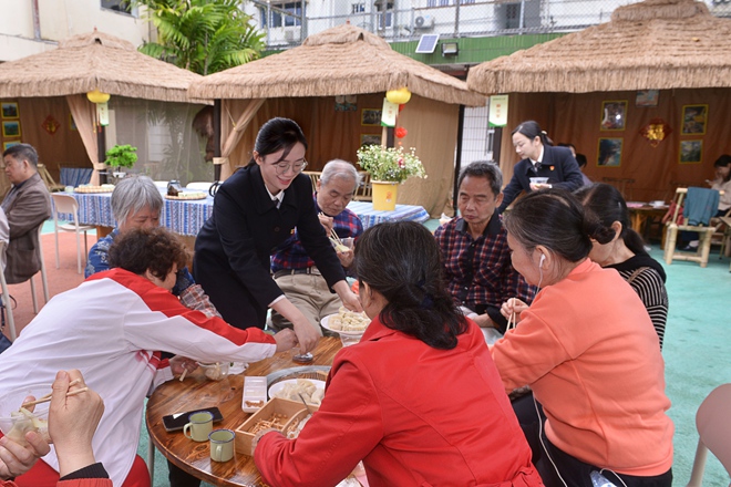 活動現(xiàn)場暖意融融,黨員同志不時為老人添油茶、加小料。一場小小的暖心活動,獲得了社區(qū)老人的點贊。一位老人說道:“你們做的油茶味道很好,喝到心里暖暖的,感謝你們對我們老人的關(guān)心?!?