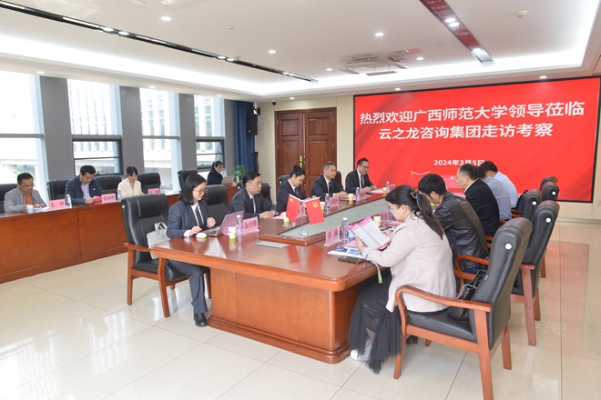為進(jìn)一步深化校企合作,搭建人才供需精準(zhǔn)對(duì)接平臺(tái),2024年3月5日上午,廣西師范大學(xué)校黨委副書記曠永青一行協(xié)同南寧校友會(huì)到云之龍咨詢集團(tuán)開展“訪企拓崗促就業(yè)”調(diào)研座談會(huì)。