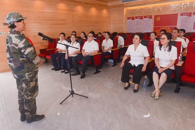 在林景云故居紅色文化傳承課堂上,林景云烈士的后人林寶霞以良慶鄉(xiāng)缸瓦窯村成為時局信息交匯地為引線,通過南寧兵變、龍州起義和五塊銀元的故事,向大家慷慨激昂的講述了林景云烈士投筆從戎、舍生忘死的英雄事跡。她聲情并茂的演講,讓全體參觀黨員都沉浸到那段團(tuán)結(jié)抗戰(zhàn)、熱血報國的紅色歲月,為英雄們的崇高信仰感動得熱淚盈眶。