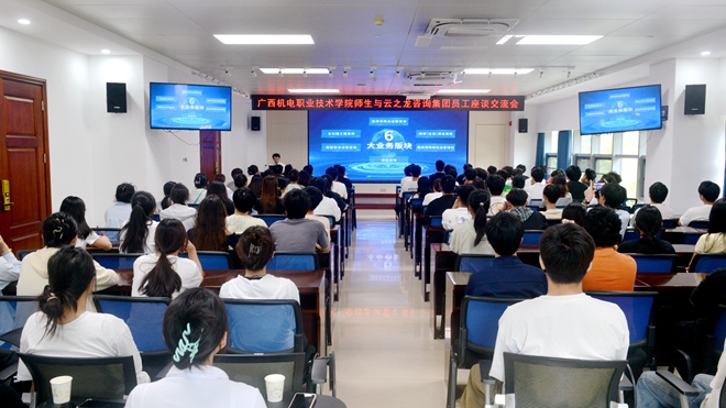2025年5月8日,廣西機(jī)電職業(yè)技術(shù)學(xué)院工程造價(jià)專(zhuān)業(yè)近百名師生走進(jìn)云之龍咨詢(xún)集團(tuán),開(kāi)啟了一場(chǎng)別開(kāi)生面的職業(yè)探索之旅。校企雙方以"理論+實(shí)踐"為紐帶,通過(guò)沉浸式參觀、行業(yè)大咖分享、互動(dòng)研討等環(huán)節(jié),為青年學(xué)子搭建起從課堂到職場(chǎng)的"成長(zhǎng)階梯"。