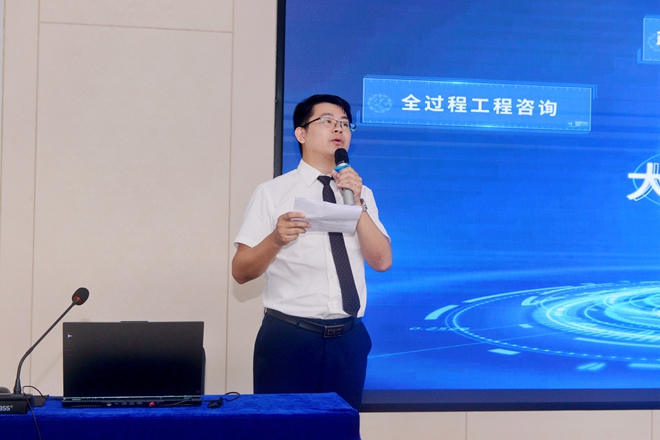 在交流座談會(huì)上,集團(tuán)人力資源部經(jīng)理盧冠亮介紹了集團(tuán)主要業(yè)務(wù)、企業(yè)文化、黨建工作等,他對(duì)學(xué)生們的到來(lái)表示歡迎,希望學(xué)生們?cè)谶@次短暫的實(shí)習(xí)參觀中能多多了解造價(jià)行業(yè),并能有所收獲。