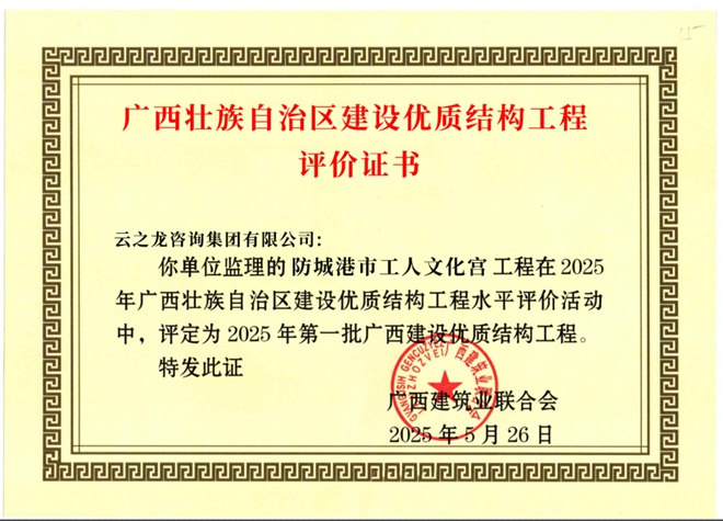 匠心鑄就品質(zhì)標(biāo)桿!云之龍全過程工程咨詢項目榮獲“廣西建設(shè)優(yōu)質(zhì)結(jié)構(gòu)工程”獎