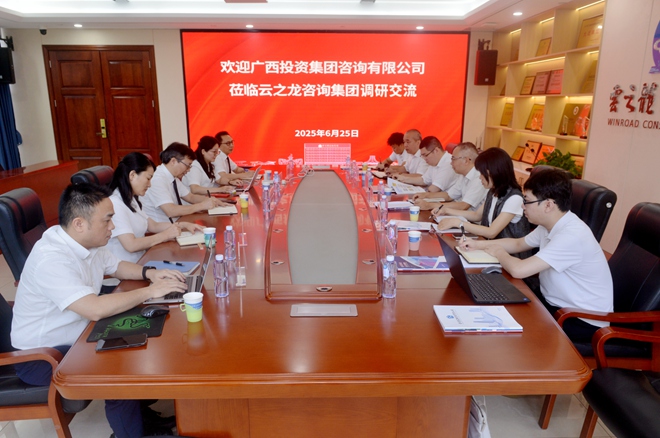 2025年6月25日,廣西投資集團(tuán)咨詢有限公司(以下簡稱“廣投咨詢”)副總經(jīng)理陳弘志率隊到云之龍咨詢集團(tuán)調(diào)研交流。云之龍副總裁莫國華等管理者參加交流會議。雙方在交流中碰撞思想火花,共同探討咨詢發(fā)展新路徑。
