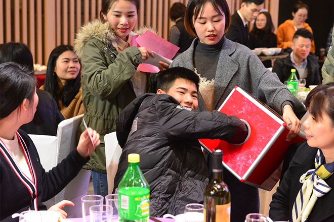 用餐環(huán)節(jié),總裁王鐿霖攜云之龍集團高層領導給員工及家屬敬酒拜年,感恩大家一年來的辛勤付出,恭賀新春。緊接著集團行政部總經(jīng)理劉斯娜帶來了驚喜連連的抽獎環(huán)節(jié),更是為晚宴增光添彩,集團為大家準備了品種豐富的大禮包和家用禮品,主持人不斷宣布各類禮品的得主,引起陣陣歡呼,歡聲笑語充滿了整個大禮堂,把整個晚宴氣氛推上了最高潮。