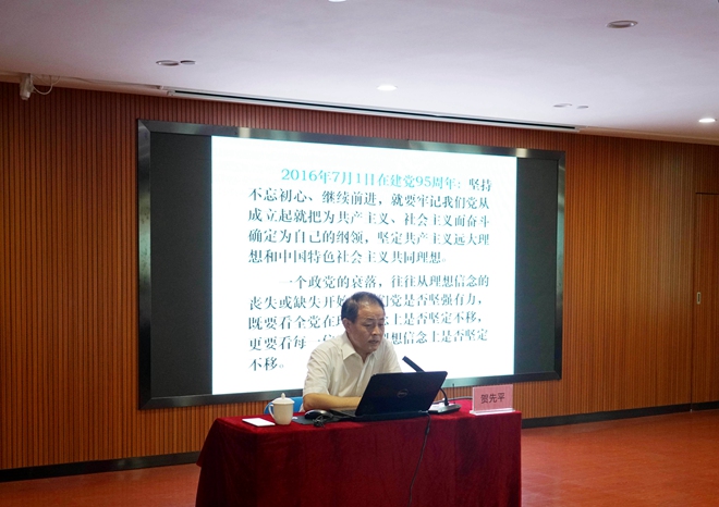 此次授課老師為廣西區(qū)委黨校文史教研部主任、教授,廣西自治區(qū)黨建研究會特約研究員賀先平教授。賀教授圍繞“堅(jiān)定理想信念,堅(jiān)守精神追求”一主題展開,通過偉人的先進(jìn)事跡,告訴大家要在踐行忠誠干凈擔(dān)當(dāng)中堅(jiān)定共產(chǎn)黨人理想信念。