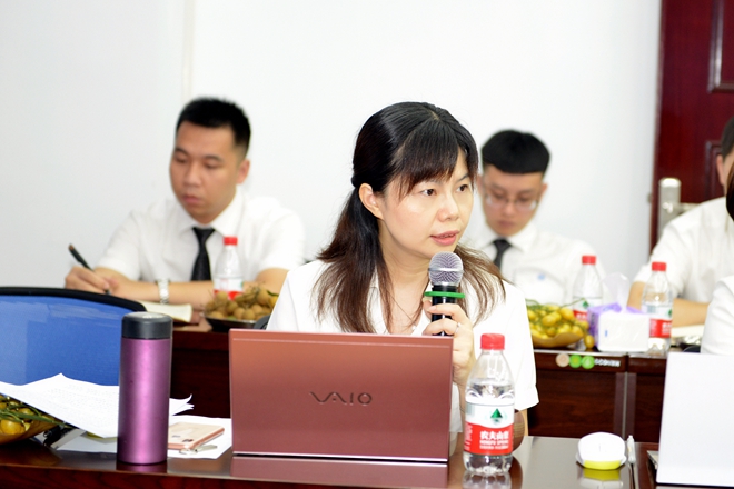 集團(tuán)副總裁聶嘉薇分析2019年上半年集團(tuán)業(yè)務(wù)情況,與大家分享新業(yè)務(wù)推廣經(jīng)驗(yàn)。她表示,在自媒體時(shí)代,人人都是集團(tuán)的代言人,要通過(guò)微信等新媒體平臺(tái)加強(qiáng)對(duì)集團(tuán)的宣傳推廣。同時(shí)要樹(shù)立起品牌形象,提升品牌競(jìng)爭(zhēng)力,以品牌效應(yīng)帶動(dòng)集團(tuán)的業(yè)務(wù)發(fā)展。