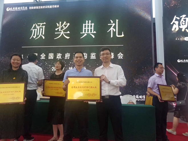2019年7月27日,從第14屆全國政府采購監(jiān)管峰會上傳來喜訊,云之龍集團榮獲“全國政府采購百強代理機構”獎。