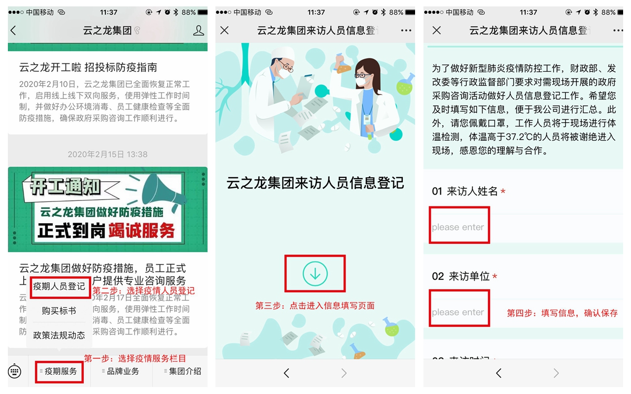 線上登記,安全來訪,云之龍集團(tuán)各類項目有序開展