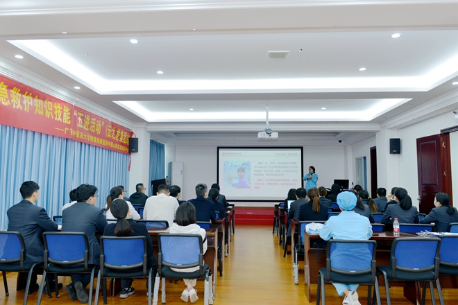 瑞康醫(yī)院副主任醫(yī)師黃清玉、龔斌為大家講授應(yīng)急救治的理論知識。他們通過多個生動的案例突出救命的黃金時間重要性,強調(diào)突發(fā)事件現(xiàn)場第一目擊者(第一反應(yīng)人)為傷病員提供心肺復(fù)蘇操作的必要性,傳播“人人學(xué)急救、急救為人人”的理念。他們以通俗易懂的方式深入淺出地講解了應(yīng)急救護(hù)理論知識、高質(zhì)量心肺復(fù)蘇(CPR)、自動體外心臟除顫器(AED)的使用、氣道異物梗阻的處理方法,告訴學(xué)員們更好地解決“何時救、誰來救、怎么救”的問題,培養(yǎng)學(xué)員既要有見義勇為的意識,更要具有見義智為的知識和技能。