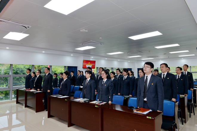 14時(shí)30分,大會(huì)在莊嚴(yán)、雄壯的中華人民共和國國歌中拉開序幕。