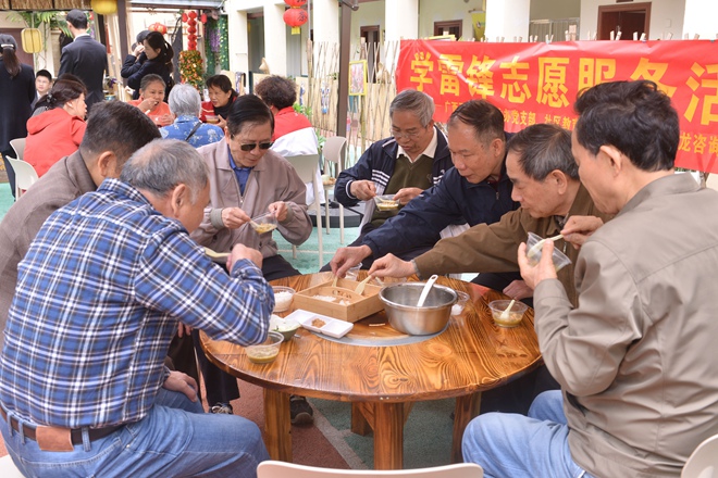 活動現(xiàn)場暖意融融,黨員同志不時為老人添油茶、加小料。一場小小的暖心活動,獲得了社區(qū)老人的點贊。一位老人說道:“你們做的油茶味道很好,喝到心里暖暖的,感謝你們對我們老人的關(guān)心?!?